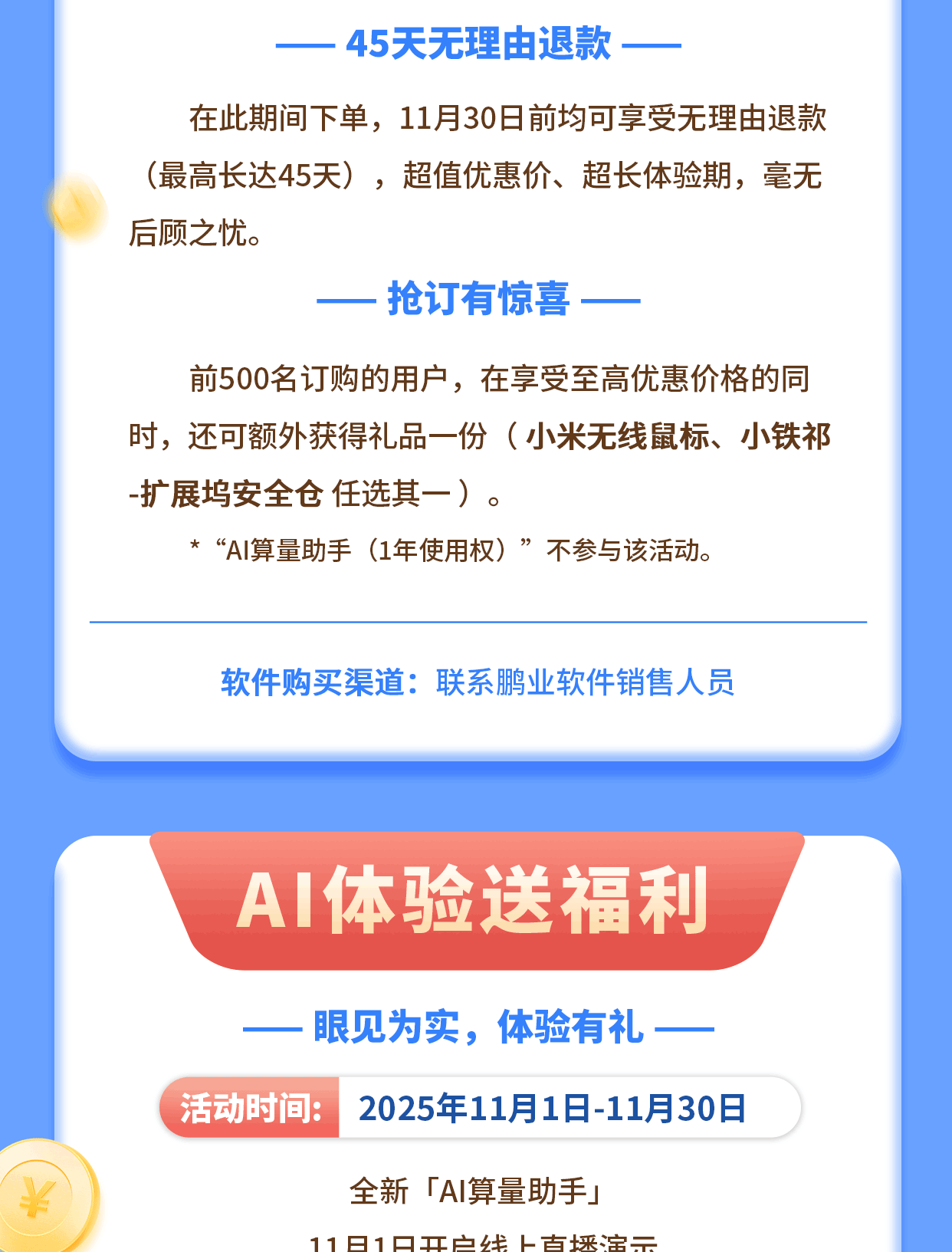 鵬業(yè)AI算量助手重磅來襲——限時5折起,45天退款保障